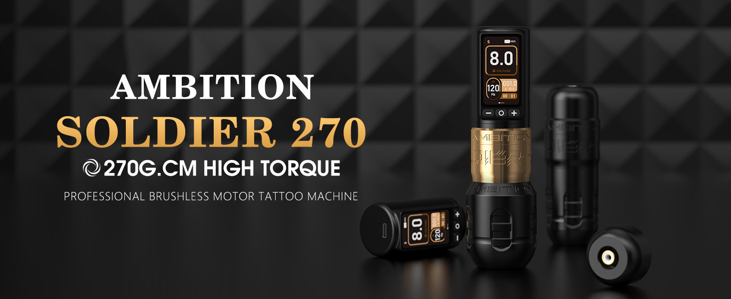 Ambition Soldier 270 Wireless Tattoo Cartridge Machine Pen with 270 g.cm High Torque Brushless Motor Equipment Supply for Professionals Tattoo Artists